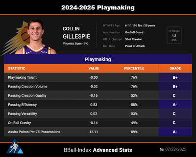But the vision is Devin Booker and Jalen Green are slated to start in the backcourt, which means Booker will function as the lead guard by default. Gillespie backs him up. But is that enough? That’s a position of opportunity.
