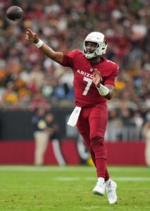 To recap: the Cardinals won their first two games of the year with Murray under center, albeit against easier opponents. They then lost three straight to the 49ers, Seahawks, and Titans by a combined five points. Murray injured his foot against the Titans, but he only missed a few snaps before finishing the game. He missed the next two weeks with reports of a Lisfranc-related injury raising concern about a longer absence, and did not play in Week 9 despite hopes of a post-bye return. In Murray’s absence, backup quarterback Jacoby Brissett led the Cardinals offense to three of their four highest points and yardage totals of the season, though only one of those games ended in victory. Brissett’s passer rating, yards per attempt, and touchdown-to-interception ratio all outpace his younger teammate, too.